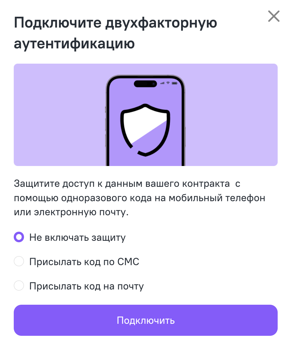 Опция помогает дополнительно защитить ваш аккаунт от злоумышленников. Если её подключить, при каждом входе в личный кабинет система будет запрашивать уникальный код, который приходит в электронном письме или по СМС. Поэтому, даже если мошенники узнают логин и пароль, они не смогут попасть в аккаунт без доступа к вашей почте или телефону.