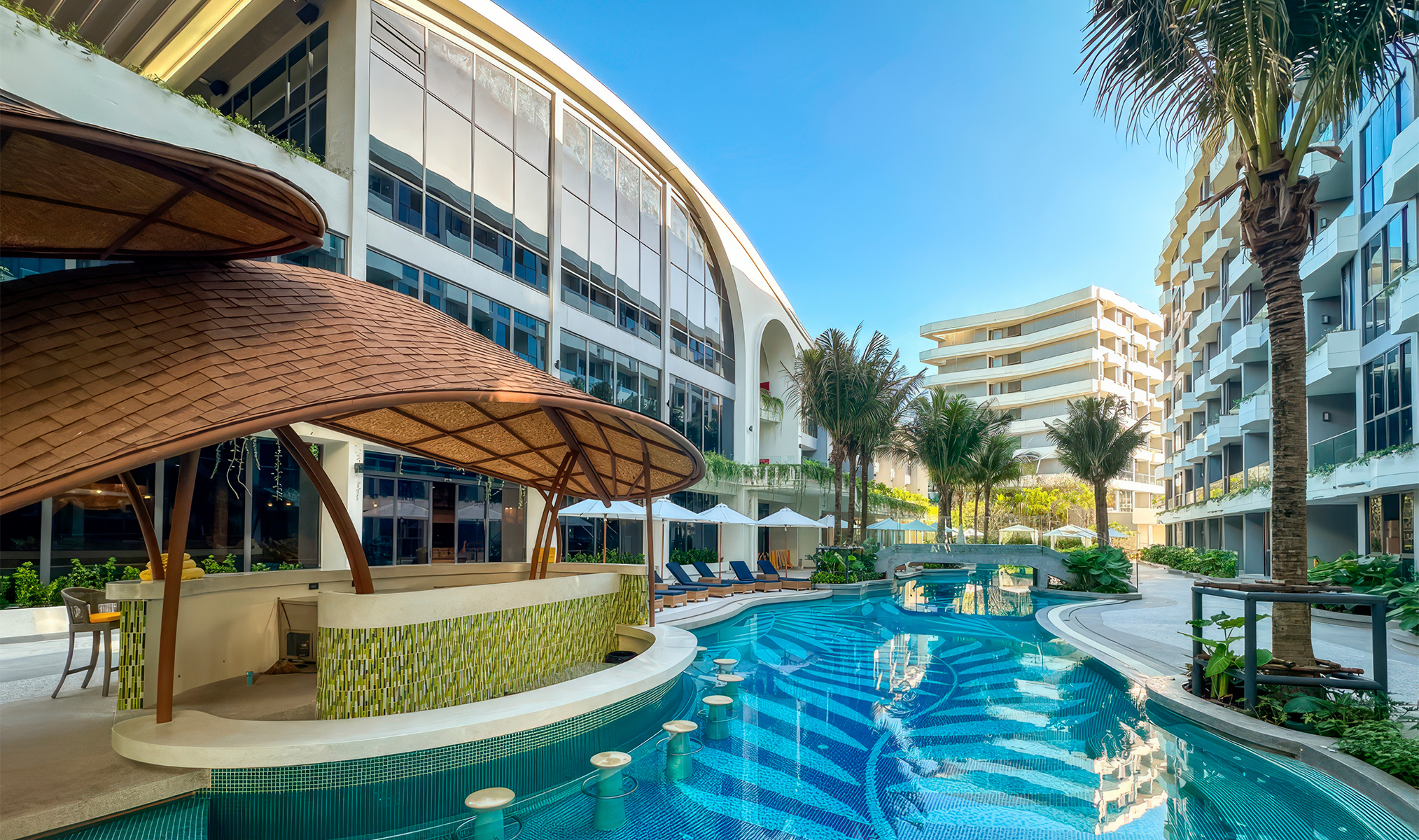 Разместиться можно в номерах с балконами, которые выходят на город или море. Поплавать — в двух открытых бассейнах, включая один на крыше с панорамным видом. Ещё плюсы: фитнес-центр и рестораны с международной кухней. На шведском столе на завтрак предлагают тайские и иностранные блюда.