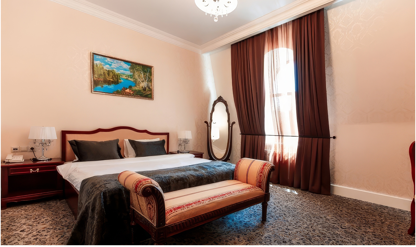 На выбор есть 115 номеров разных категорий, от стандартной до «Люкс Премиум». Все номера оснащены кроватями King size либо двумя раздельными кроватями, рабочим местом, высокоскоростным интернетом, а также зоной для приёма гостей. В комнатах «Люкс Премиум» также есть балкон.