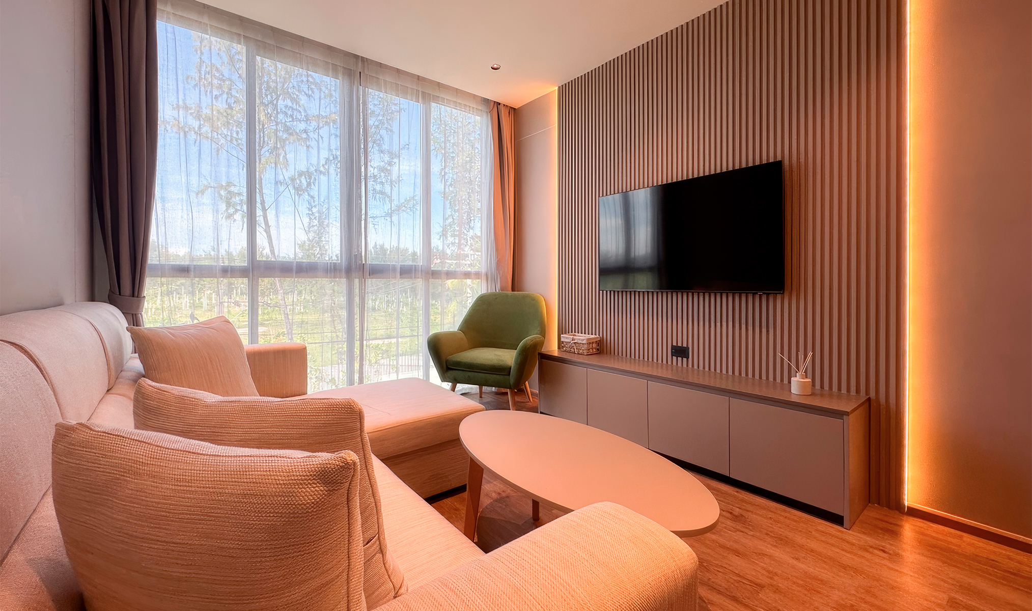 Гостей ждут 350 номеров, продуманных под разные сценарии отдыха. Для тех, кто ищет компактного и удобного размещения, подойдут делюксы площадью 28 кв. м. Чуть просторнее — студии с полноценной кухней и балконом, где можно почувствовать себя как дома.