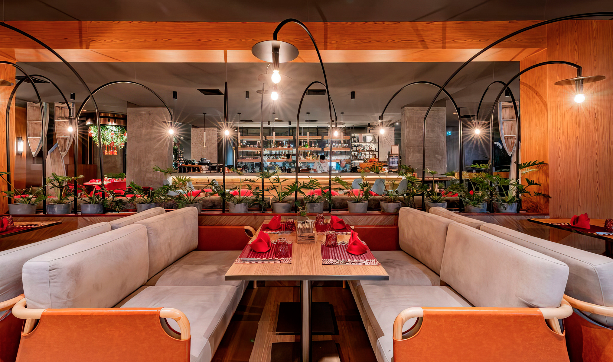 - Sanook — главный ресторан отеля, напоминающий оживлённые пхукетские рынки. Завтраки начинаются в 6:30 утра, днём и вечером подают южнотайские блюда с пряными специями и свежими травами, а также угощения, вдохновлённые китайско-португальским наследием острова.