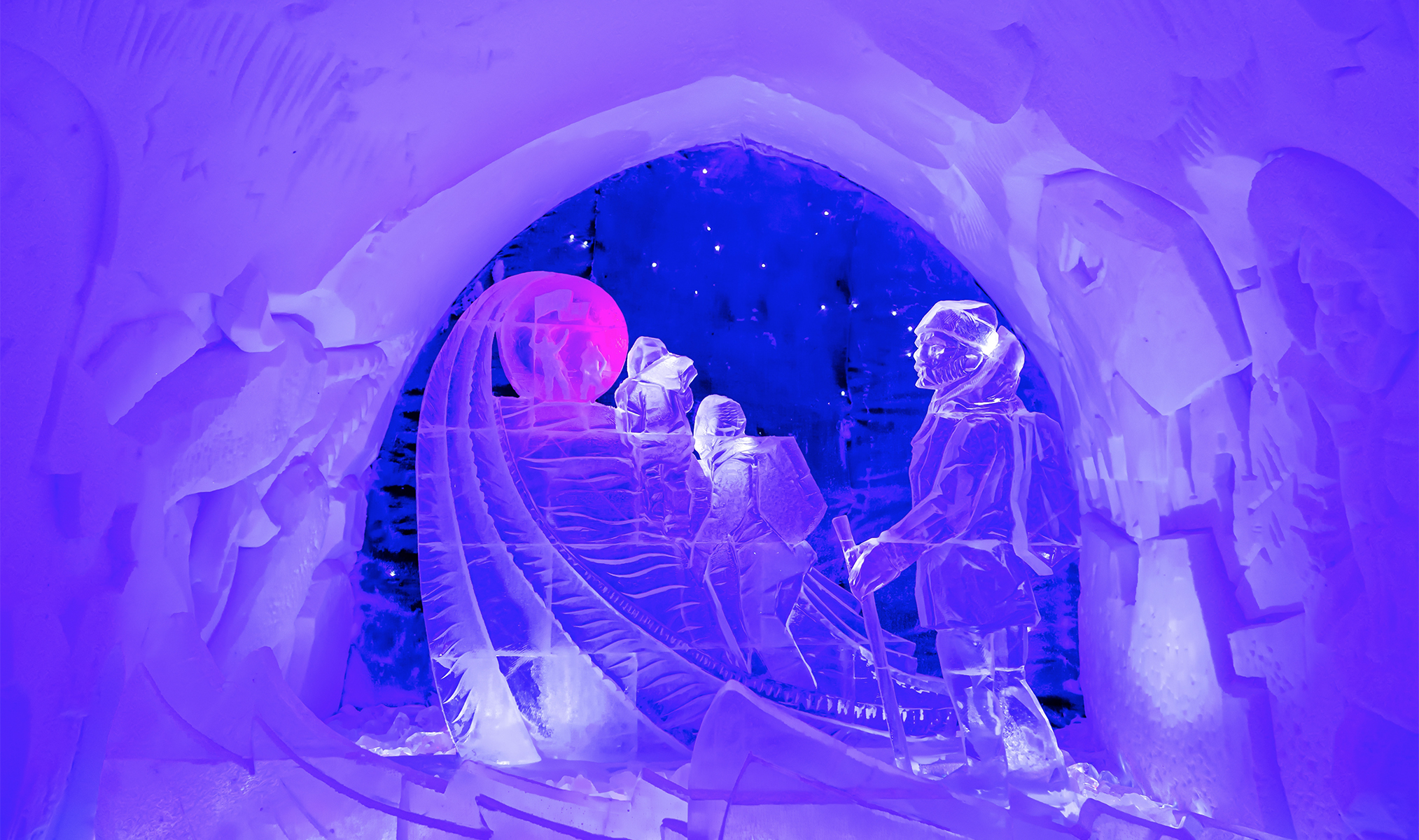 У подножия горы Вудъяврчорр раз в год строят целый комплекс из снега. Гостей ждут лабиринты с залами-пещерами, ледяной бар, кинотеатр и тематические комнаты. Снежные скульптуры и гравюры подсвечиваются, а в каждом зале звучит своя музыка. Внутри стабильно –5 °C, так что стоит утеплиться.