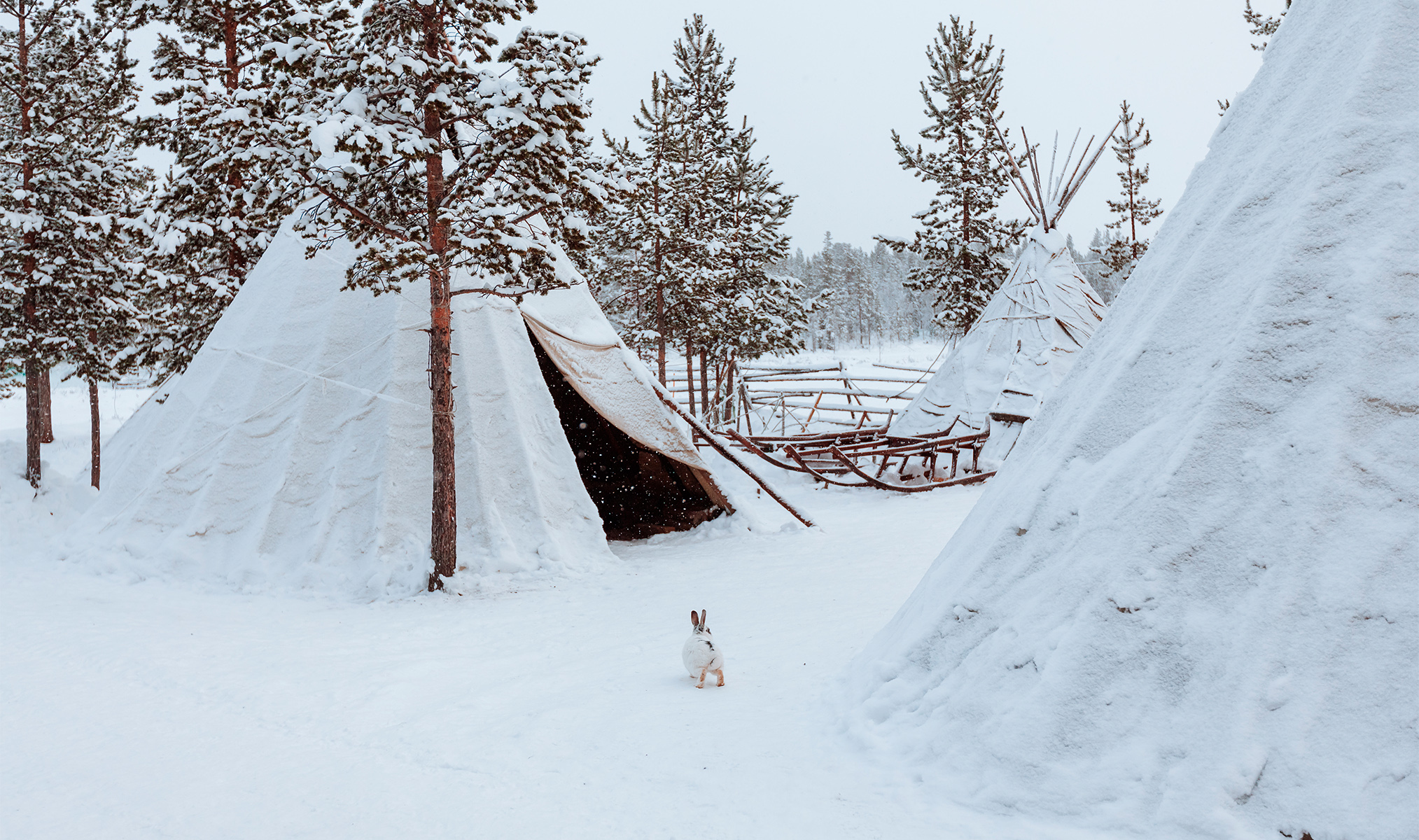 Экскурсия по деревне длится три часа: туристы увидят настоящие чумы и куваксы, познакомятся с кроликами, хаски и оленями. Фото: ted.ns / Shutterstock.com